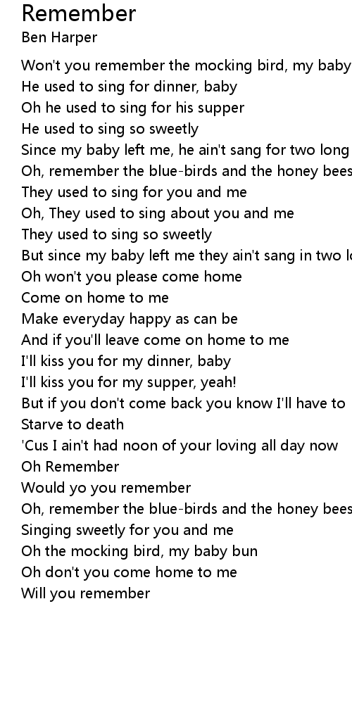 Won't you remember the mocking bird, my baby bun |