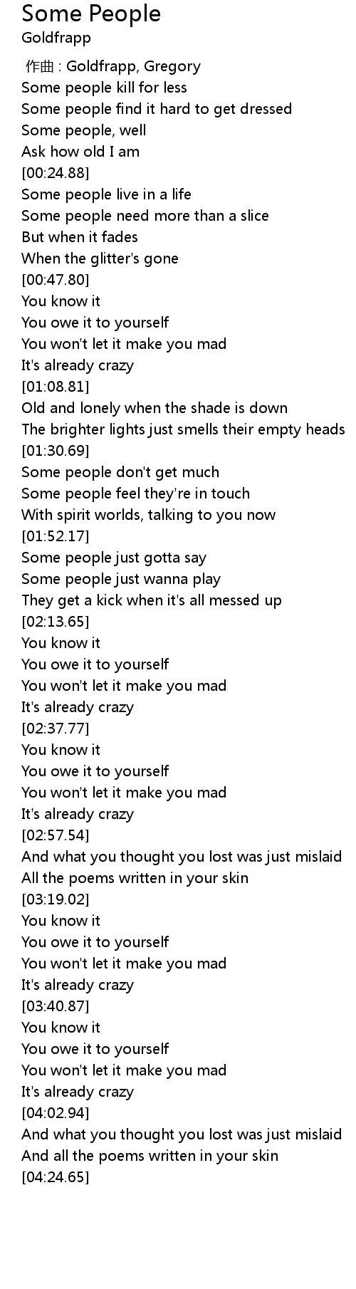 | [01:56.40] | Some people just gotta say |