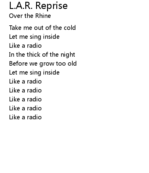 | Song | L.A.R. Reprise |