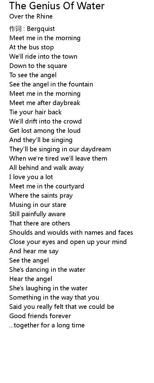 | Song | The Genius Of Water |