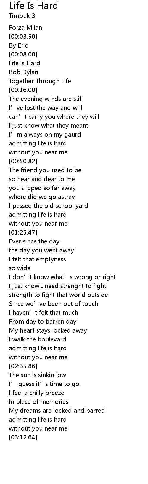 | [00:10.00] | Life is Hard |