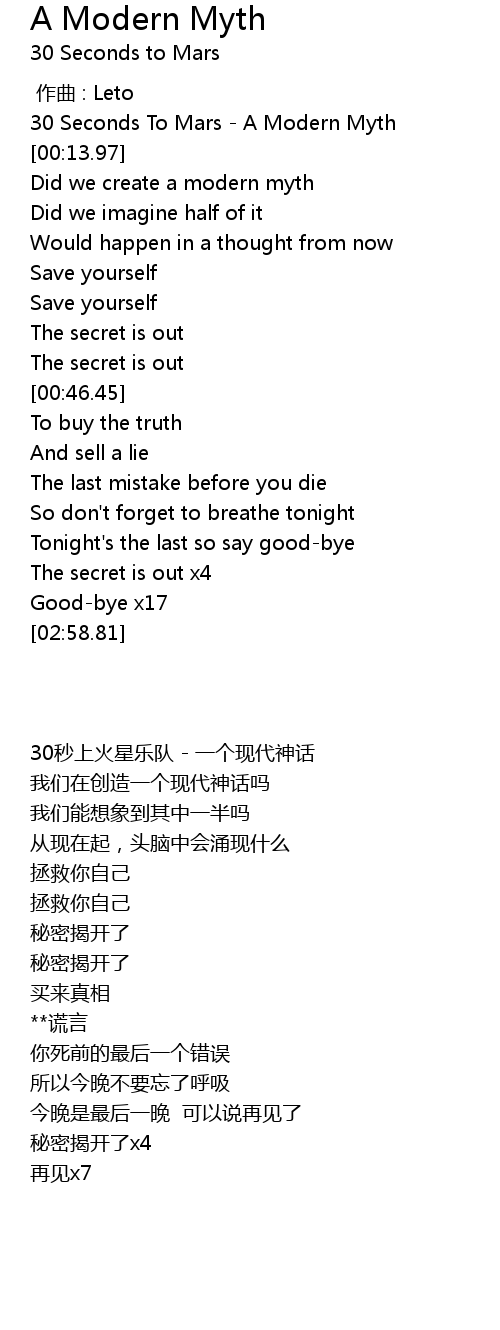 | [00:00.00] | 30 Seconds To Mars A Modern Myth |