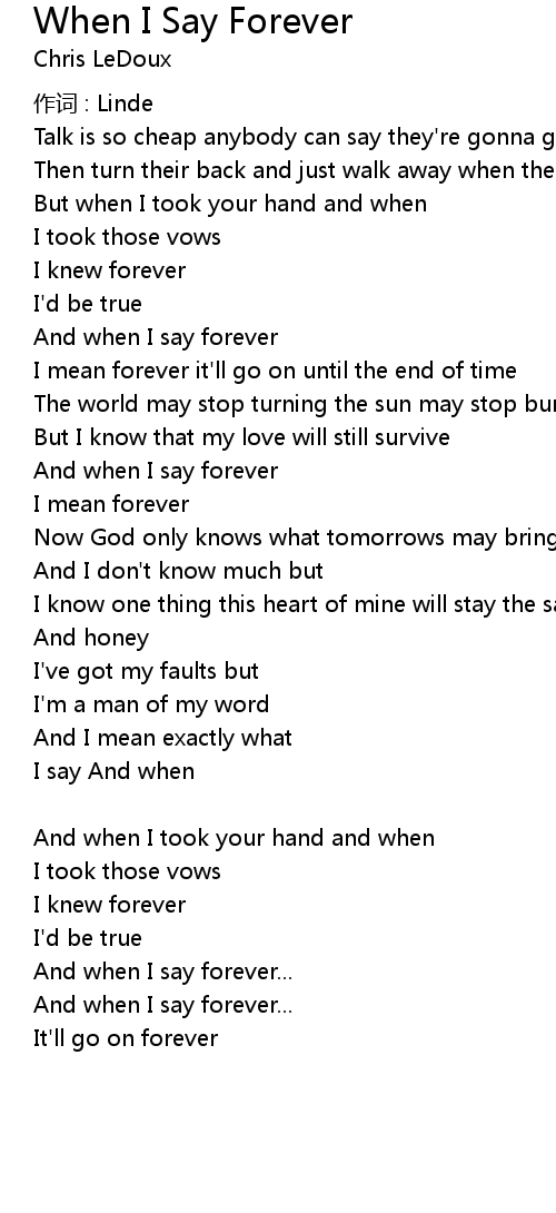 | Talk is so cheap anybody can say they're gonna give you endless love | |