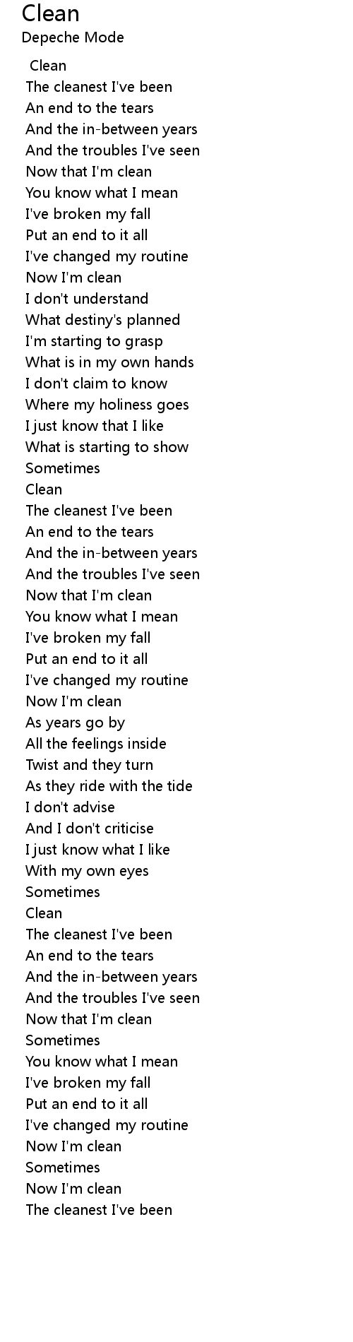 Now I'm clean |