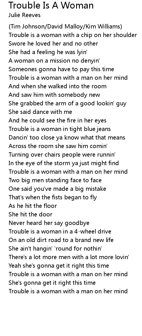 Trouble is a woman with a man on her mind |