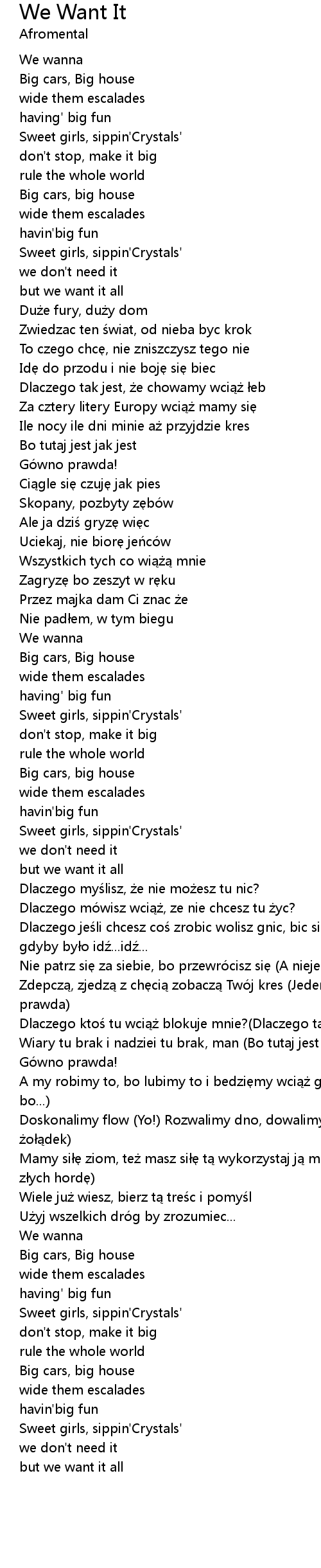 | A my robimy to, bo lubimy to i bedzi my wci grac w to Nie zatrzymasz nas bo... | |