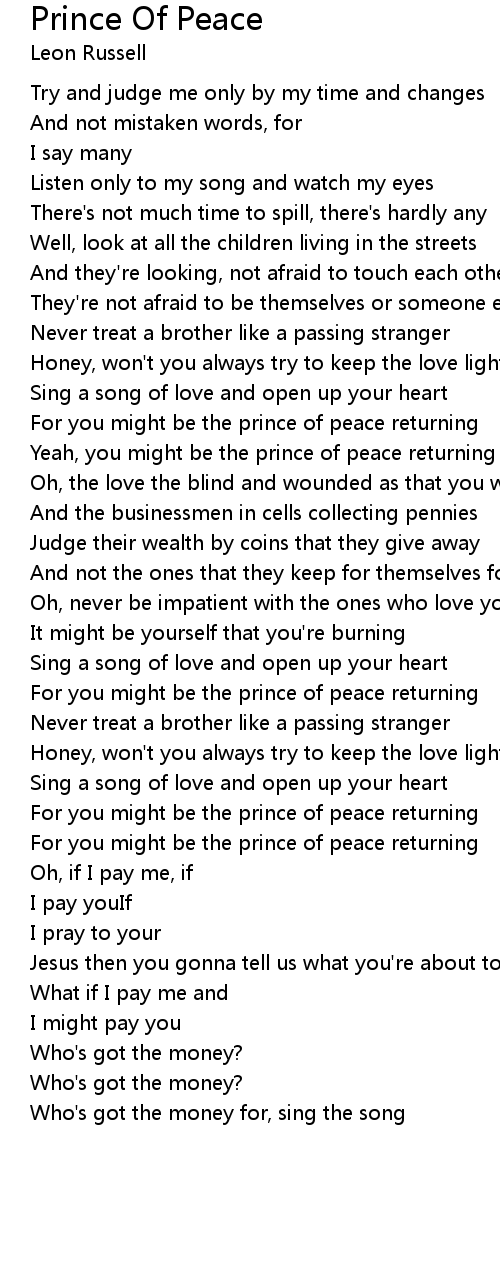 For you might be the prince of peace returning |