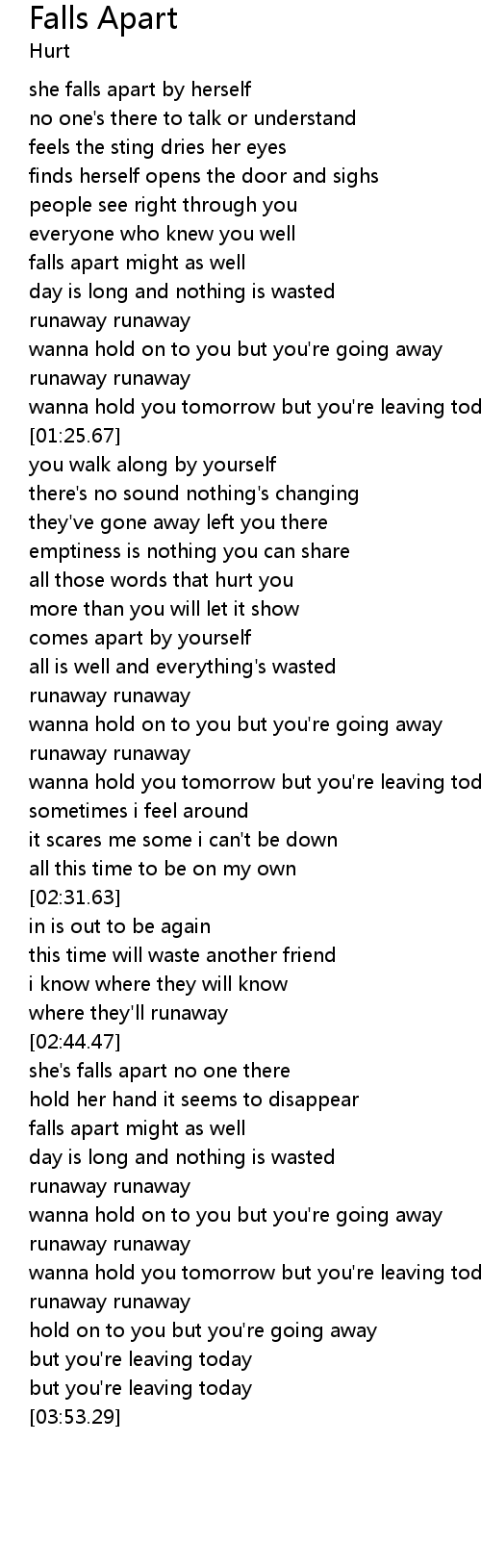 | [03:01.89] | she's falls apart no one there |