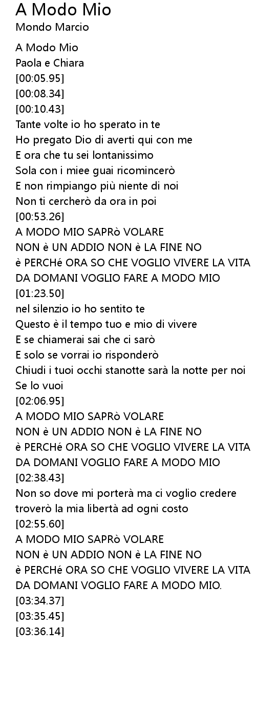 | [02:59.64] | A MODO MIO SAPRo VOLARE |