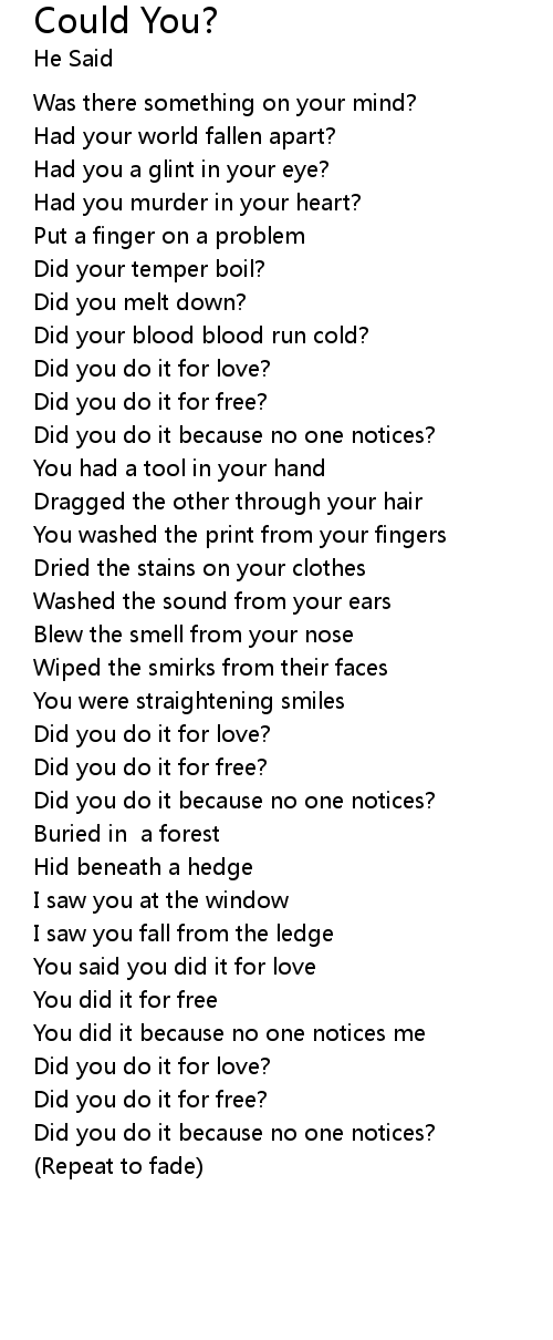 | [03:44.07] | Did you do it for love? |