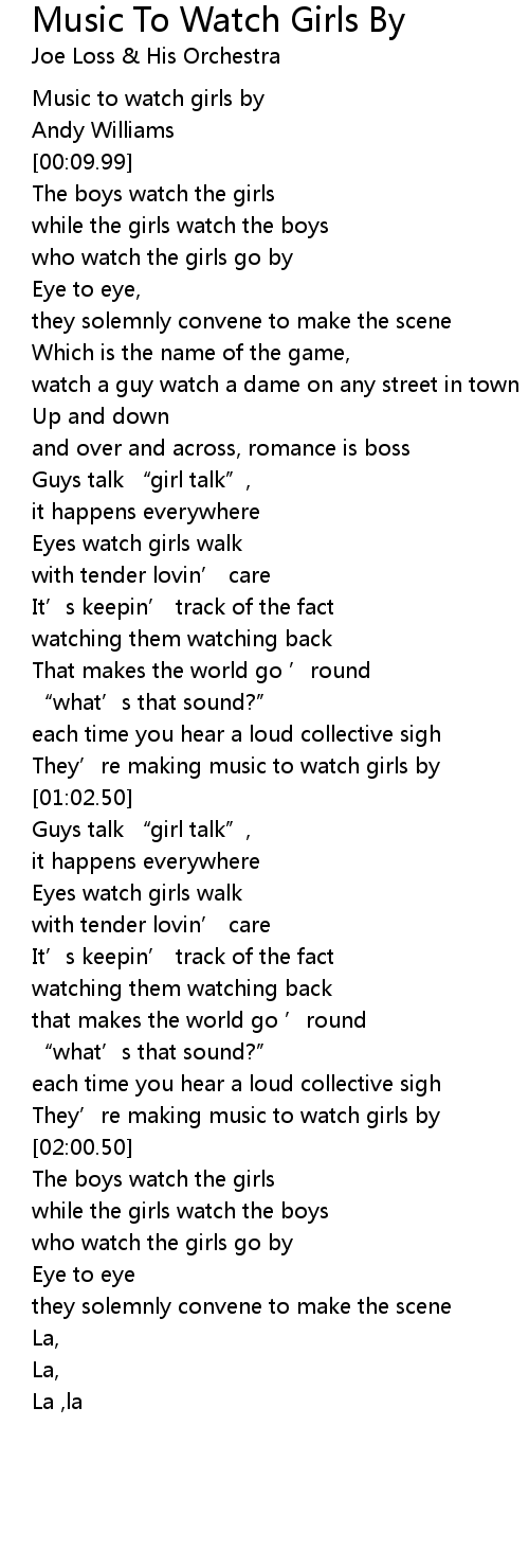 | [00:22.50] | watch a guy watch a dame on any street in town |