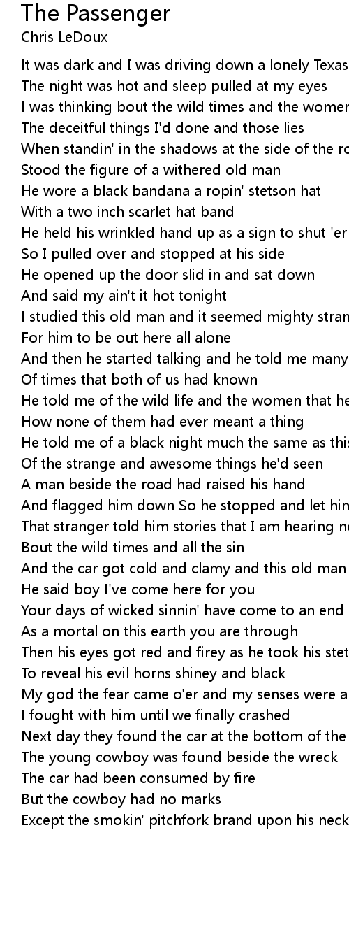 Then his eyes got red and firey as he took his stetson off |