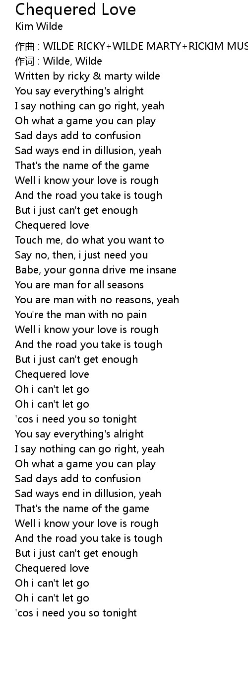 | Song | Chequered Love |