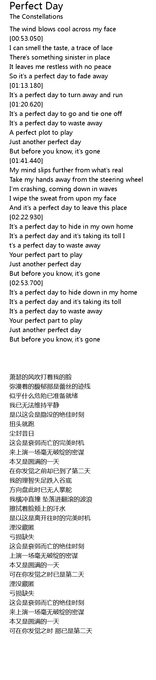 So it's a perfect day to fade away |