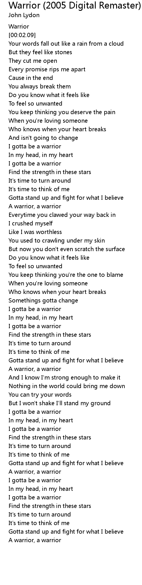 Warrior (2005 Digital Remaster) Lyrics
