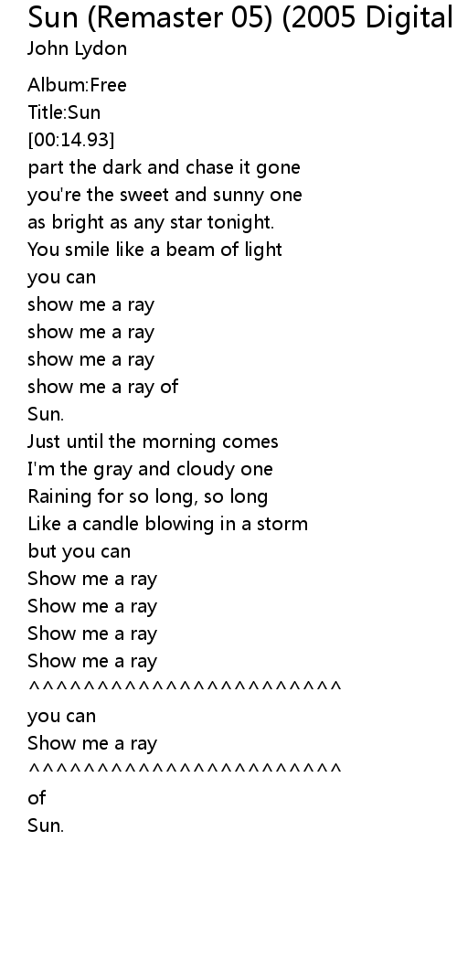 Sun (Remaster 05) (2005 Digital Remaster) Lyrics