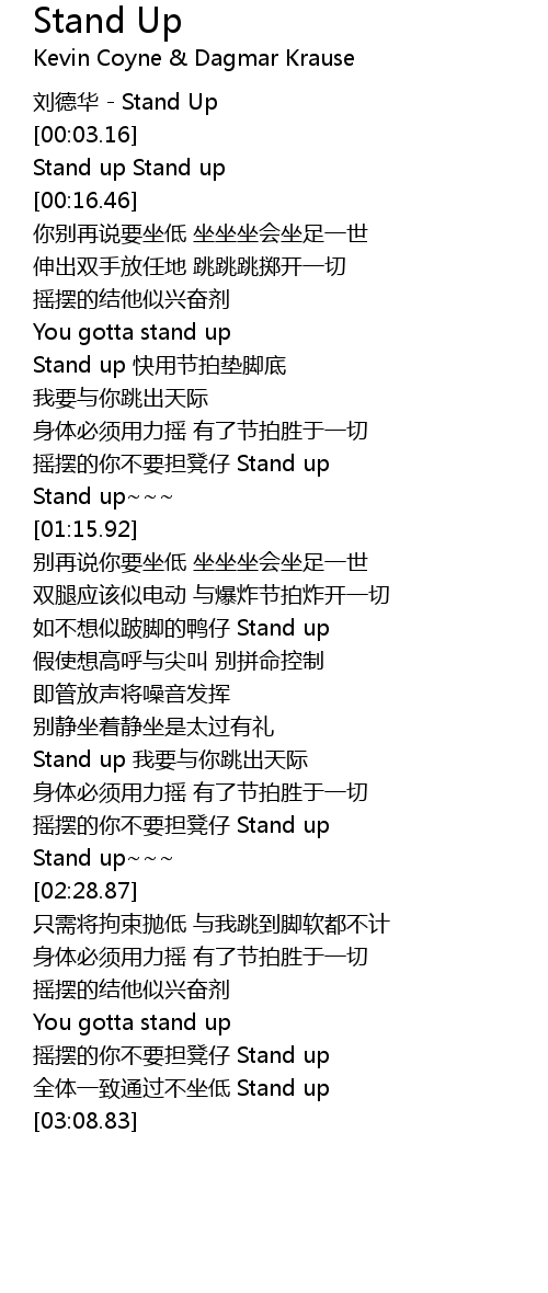 | [03:04.53] | 全体一致通过不坐低 Stand up |