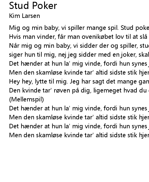 | Mig og min baby, vi spiller mange spil. Stud poker og terninge spil. | |