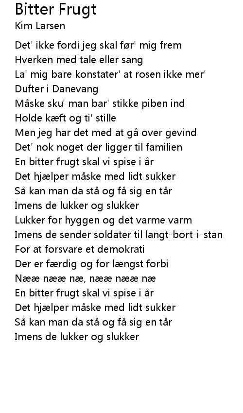 | Song | Bitter Frugt |