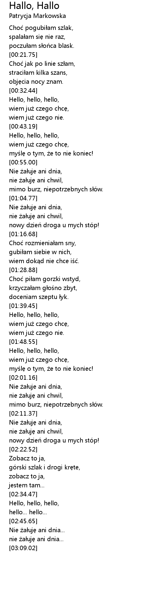 | [02:47.01] | Nie żałuję ani dnia... |