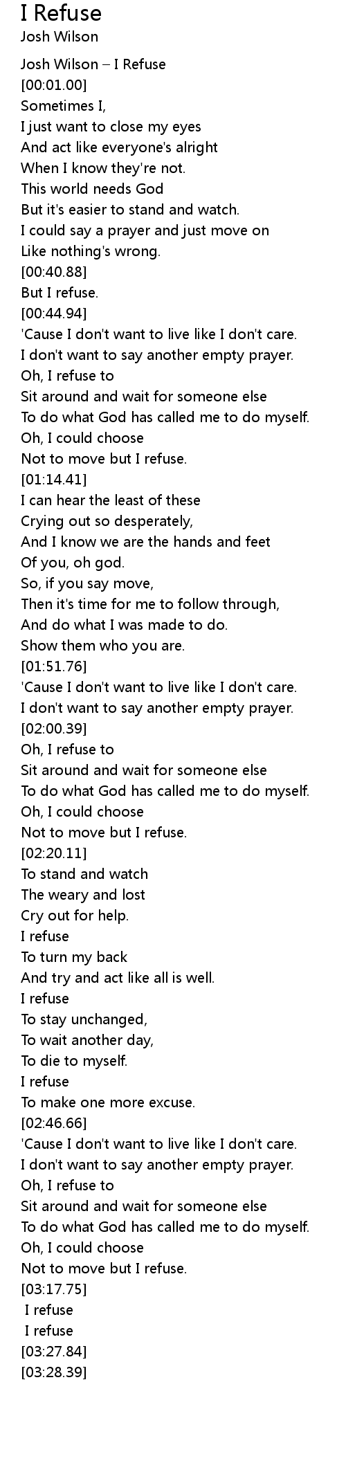 | [00:00.50] | Josh Wilson I Refuse |