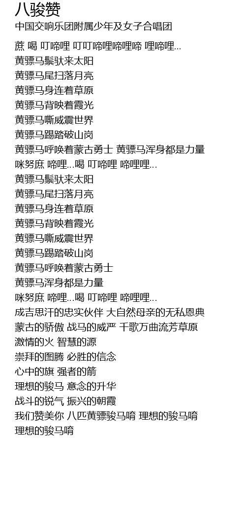 | Song | 八骏赞 |