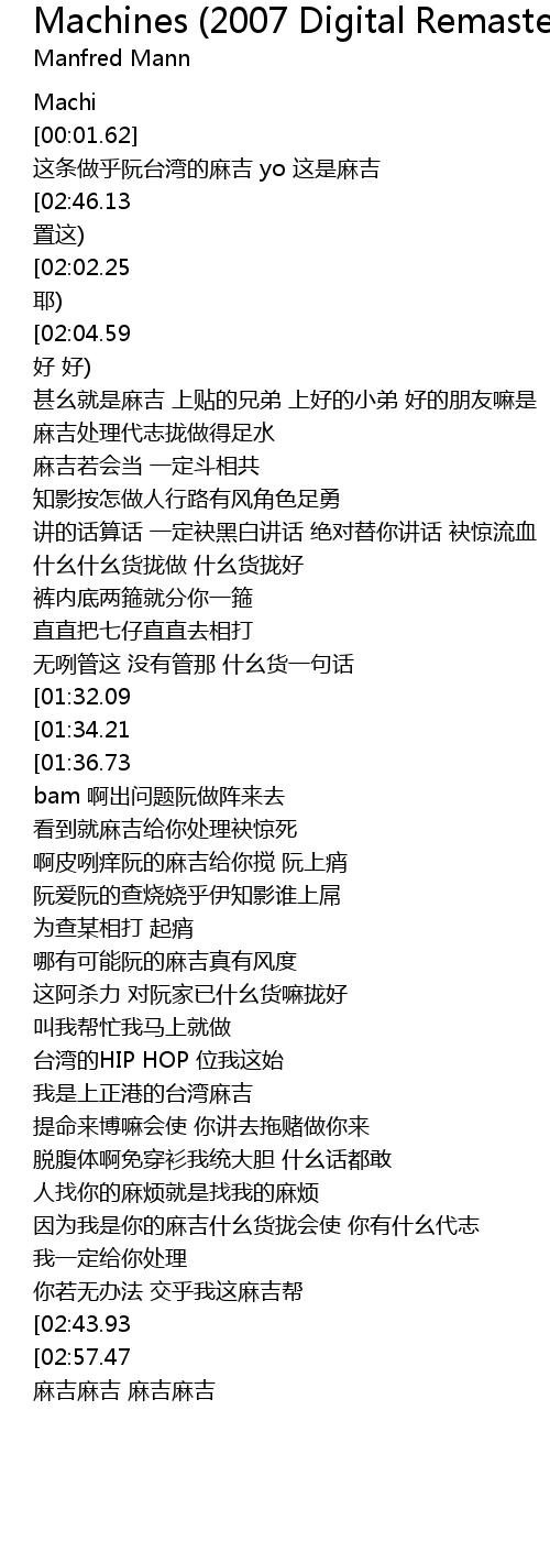 | [03:01.95] | 麻吉麻吉 麻吉麻吉 |