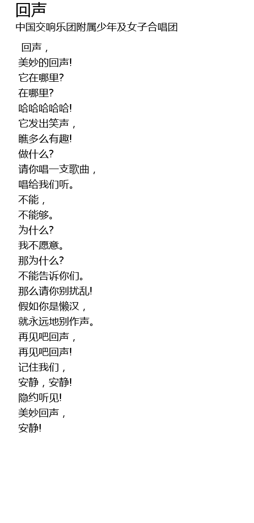 | Artist | 中国交响乐团附属少年及女子合唱团 |