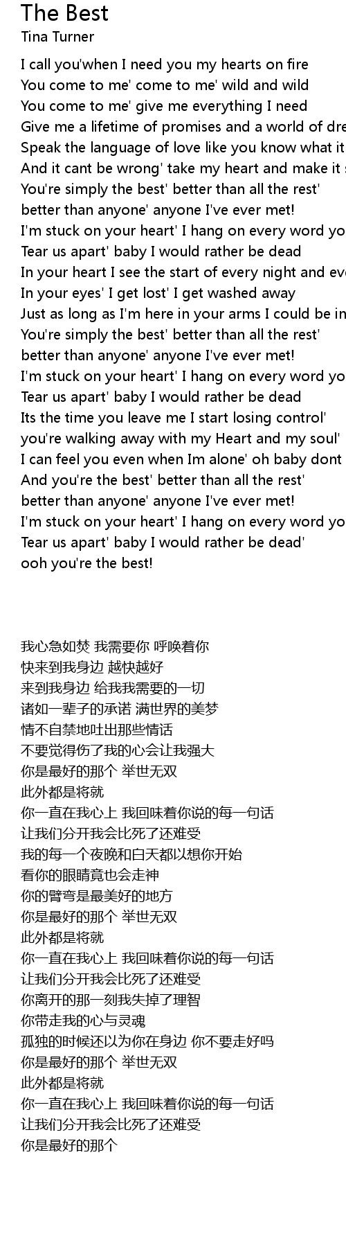 | [01:06.398] | You' re simply the best' better than all the rest' |