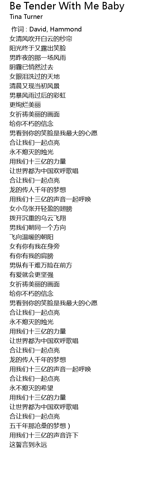 | [00:00.00] | 作词 : David, Hammond |