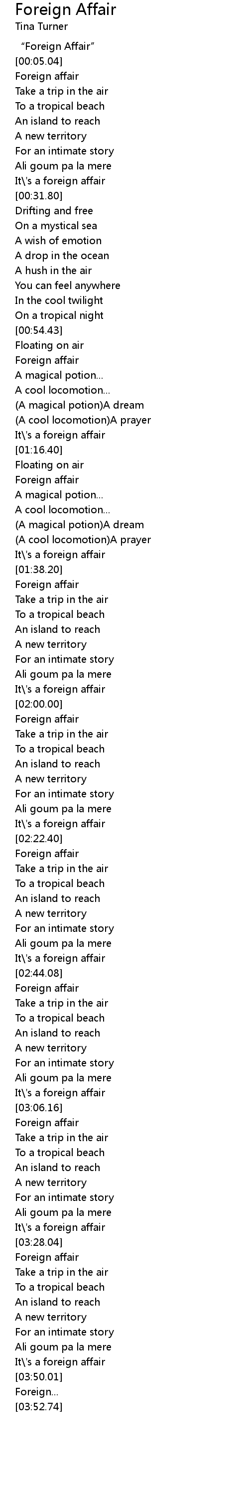 | [03:03.65] | It\'s a foreign affair |