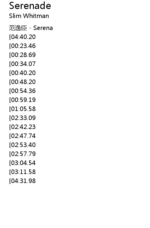| [04:08.00][02:57.79] | Serena 我用幸福交换你的礼物 是孤独 |