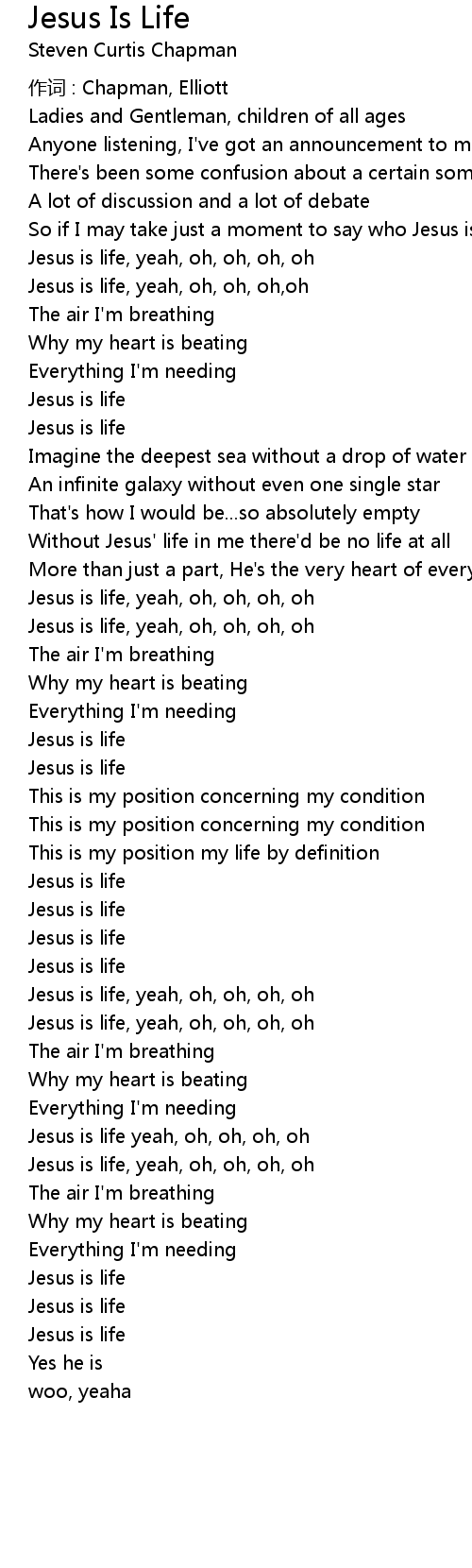 | Jesus is life yeah, oh, oh, oh, oh | |