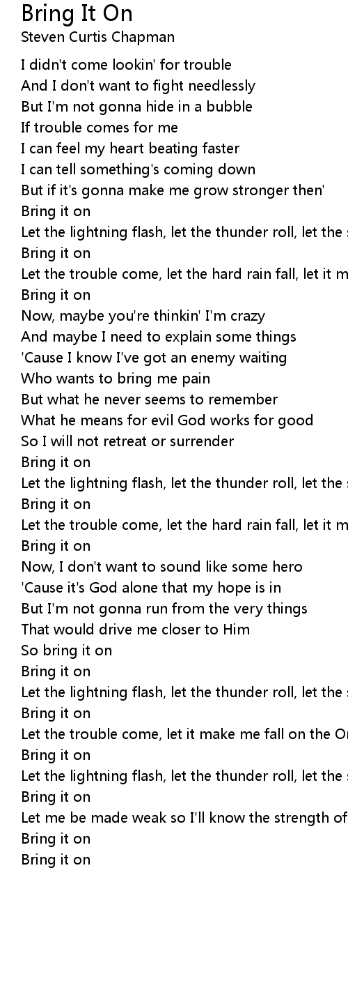 Let the trouble come, let the hard rain fall, let it make me strong |