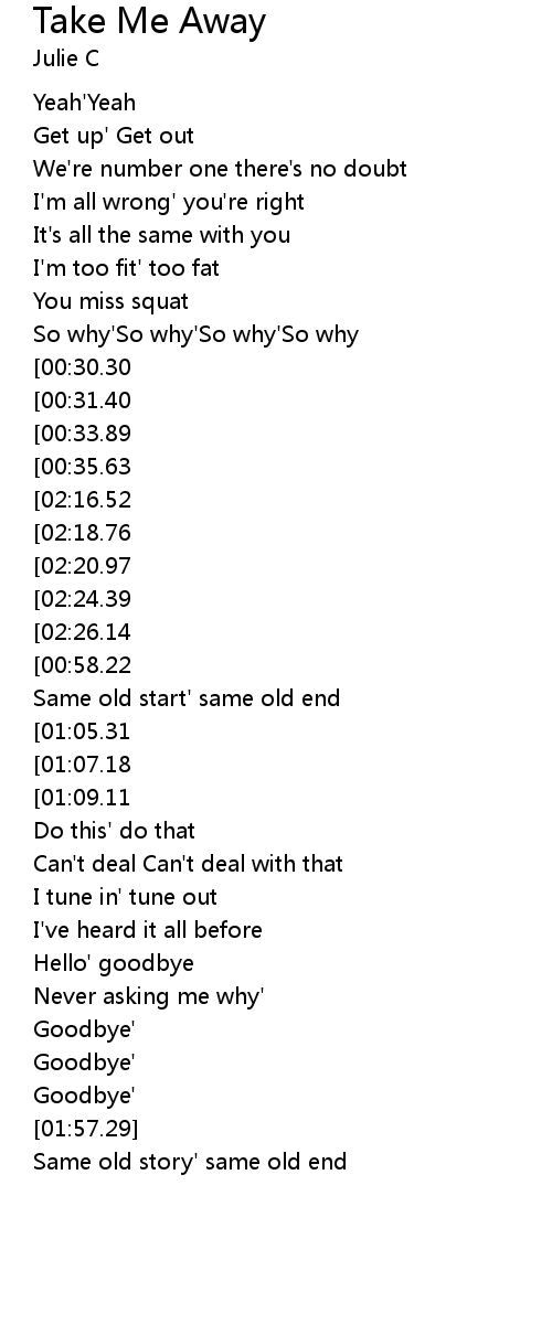 Hey' take me away |