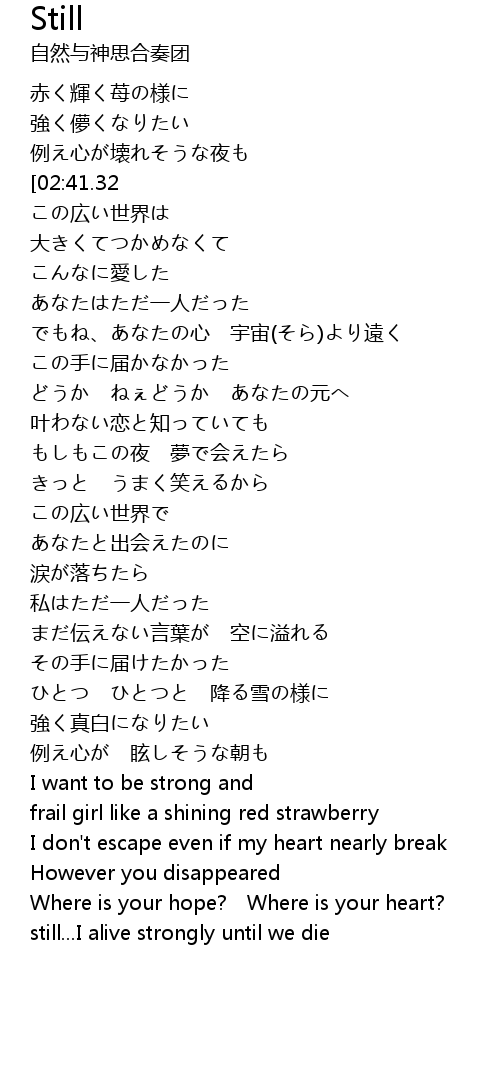 | [00:23.67][02:41.32] | Still...I love you until we die |