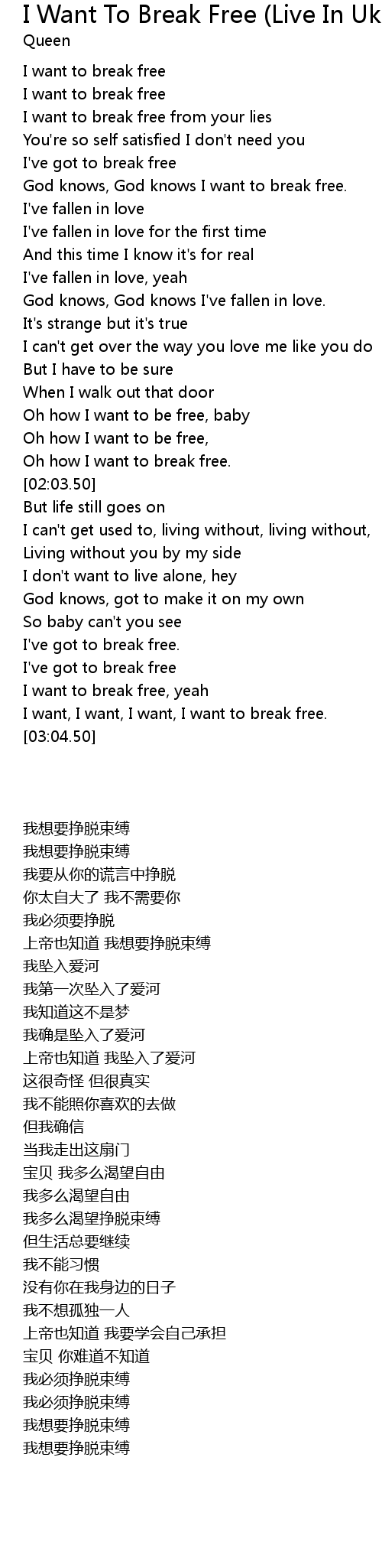 [03:45.50] I want to break free, yeah