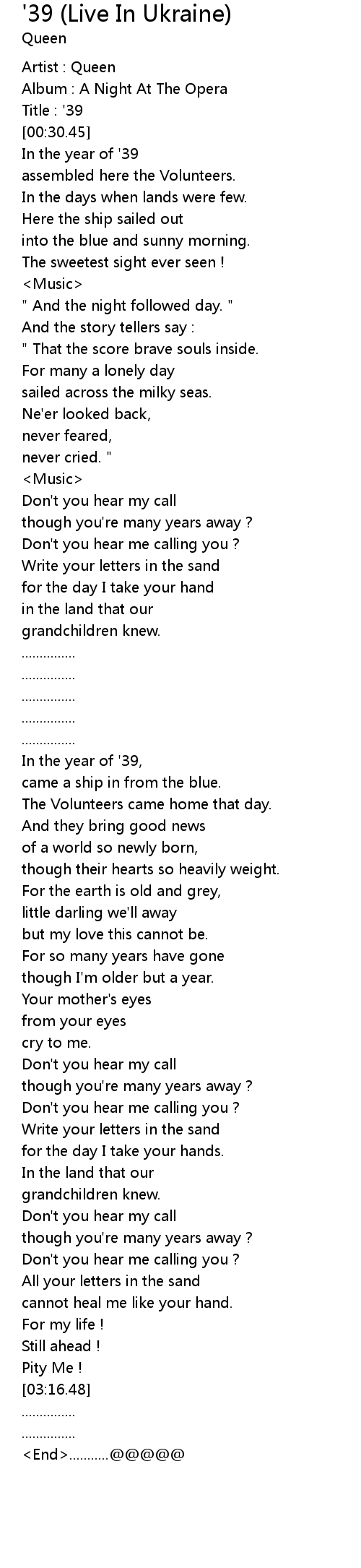 '39 (Live In Ukraine) Lyrics