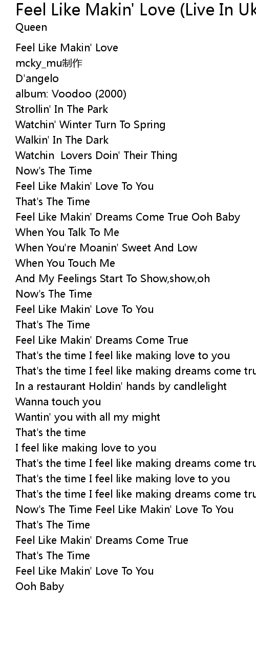 | [00:59.28] | Feel Like Makin' Dreams Come True Ooh Baby |