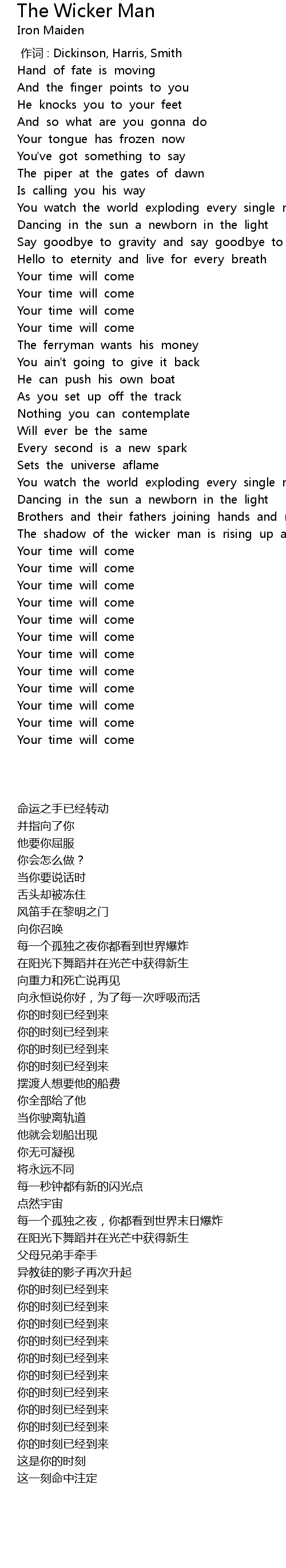 | [01:50.71] | The shadow of the wicker man is rising up again |