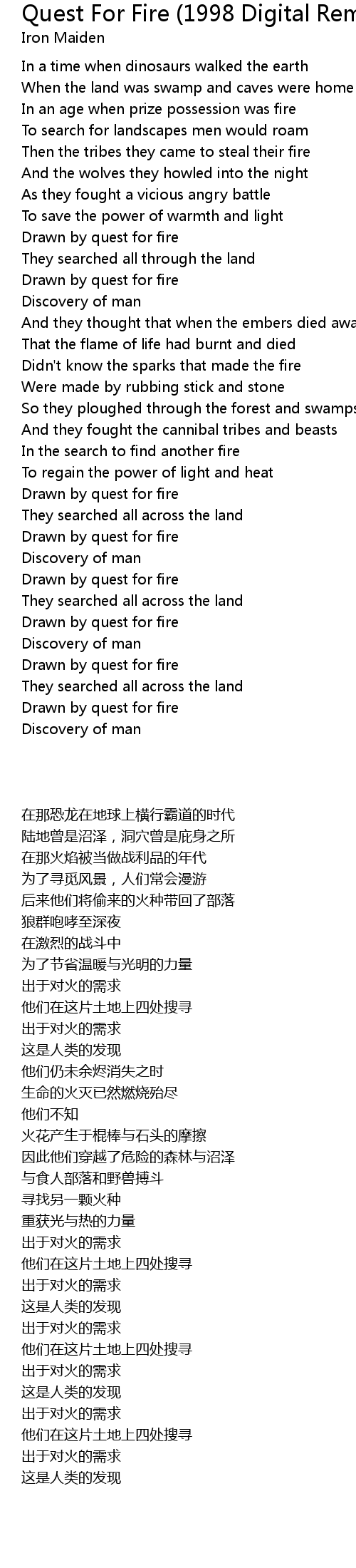 Drawn by quest for fire |