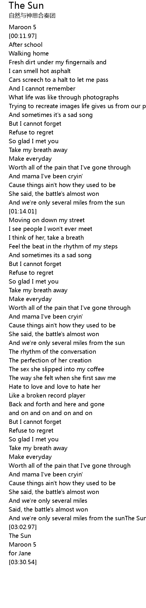 | [02:56.98] | And we're only several miles from the sunThe Sun |