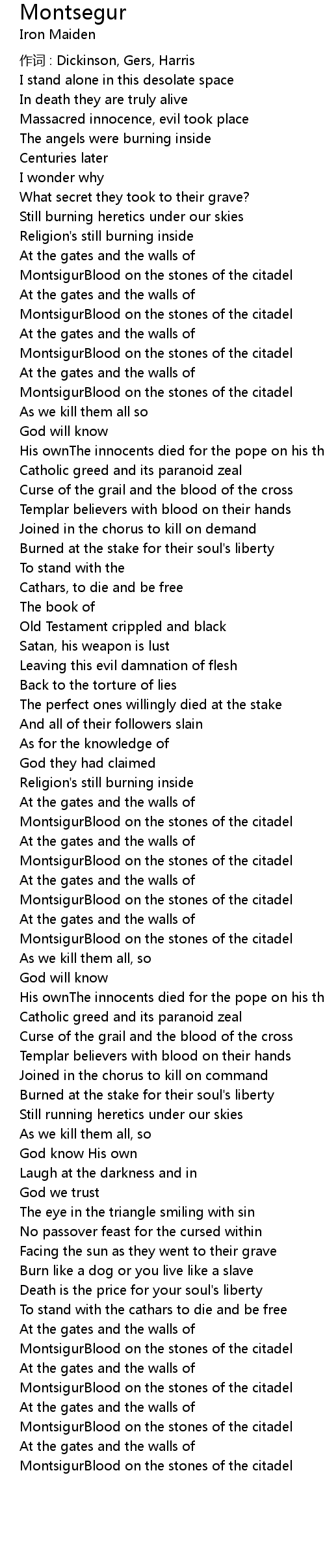 | Song | Montsegur |