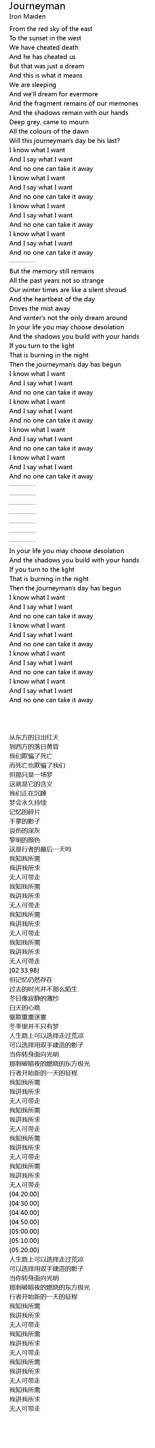 | [05:53.73] | Then the journeyman's day has begun |