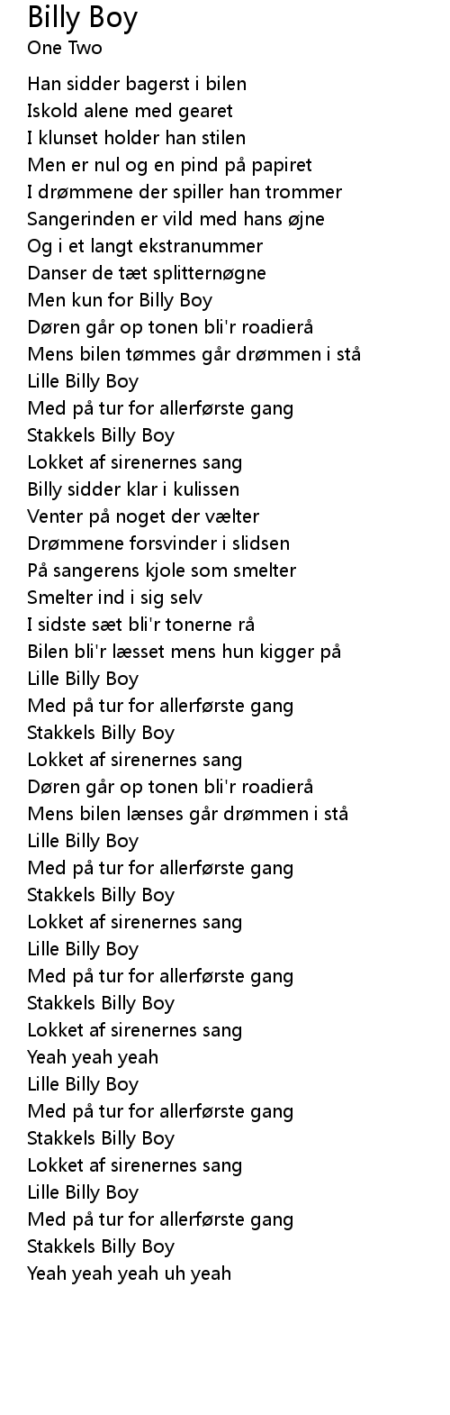 | [01:06.63] | Men kun for Billy Boy |