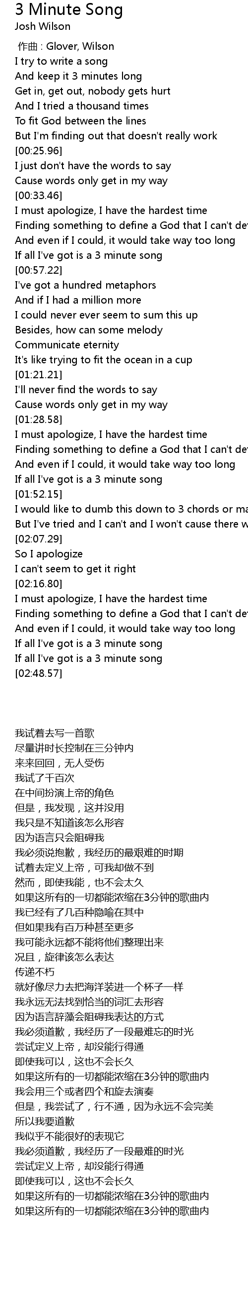 | [00:52.84] | If all I' ve got is a 3 minute song |