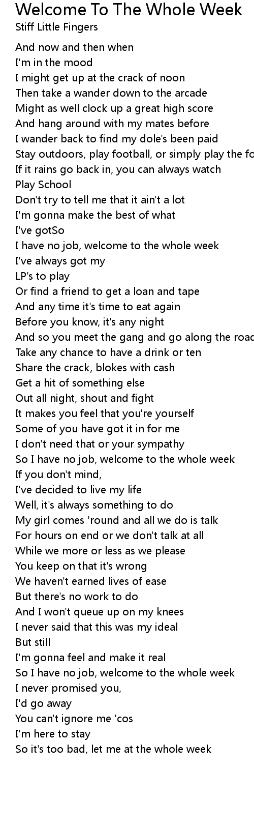 I have no job, welcome to the whole week |