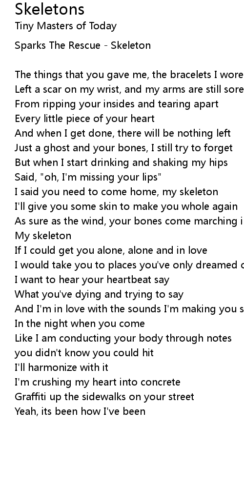 I said you need to come home, my skeleton |