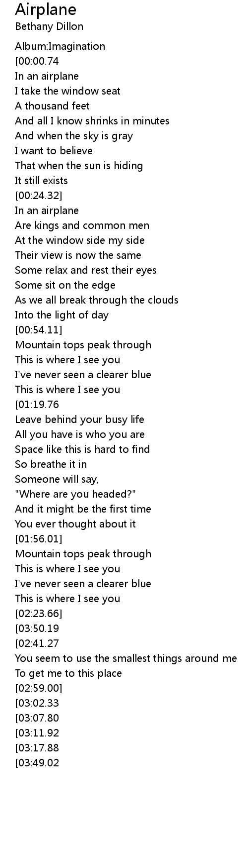 Airplane Lyrics