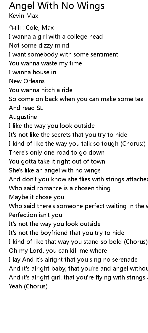 | And it's alright baby, that you're and angel without wings | |